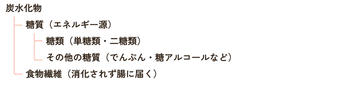 図のとおり、炭水化物 > 糖質 > 糖類という関係になっています。